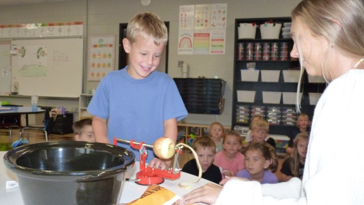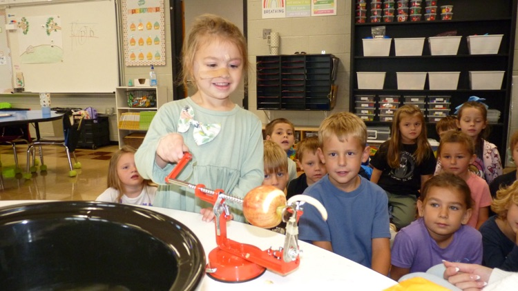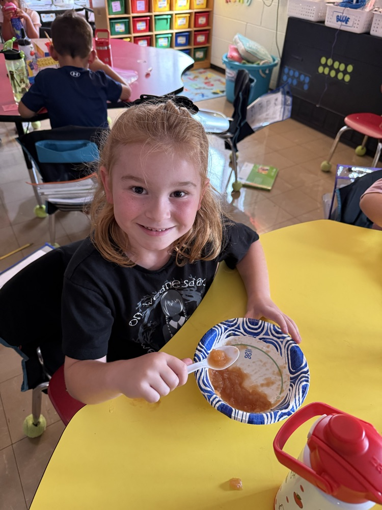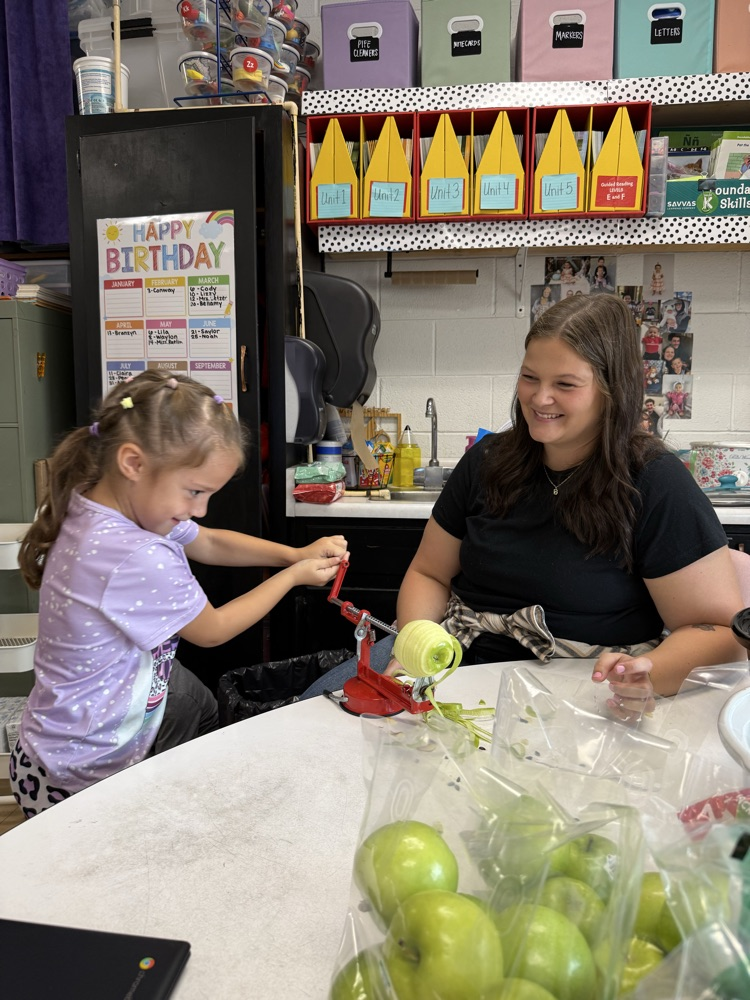 Kindergarten had so much fun peeling apples and making applesauce today! 🍎